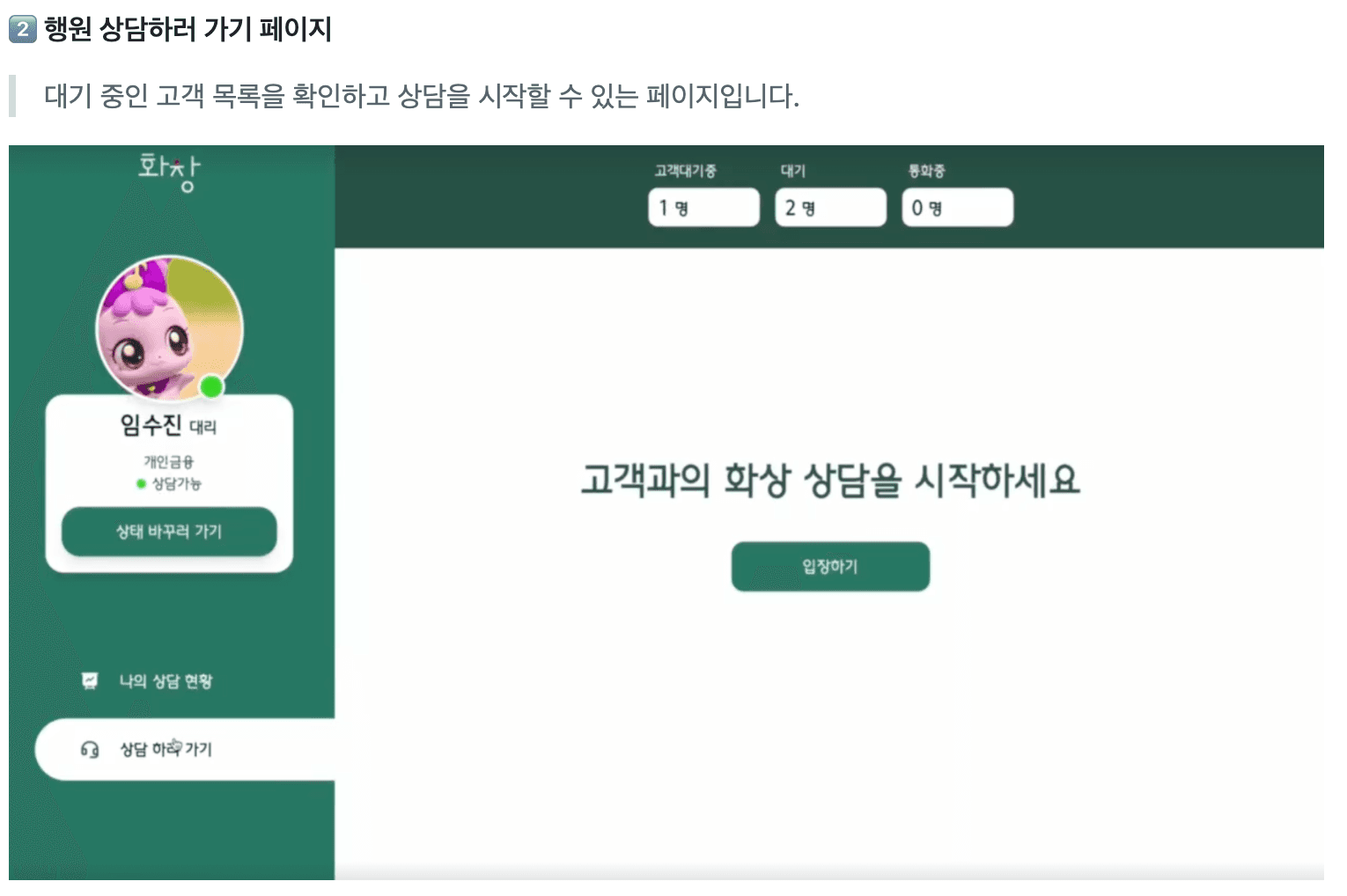 •고객–상담사 간 실시간 영상/음성 기능 & 화면 공유 기능 구축